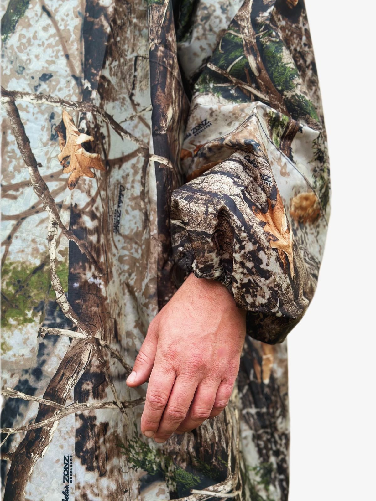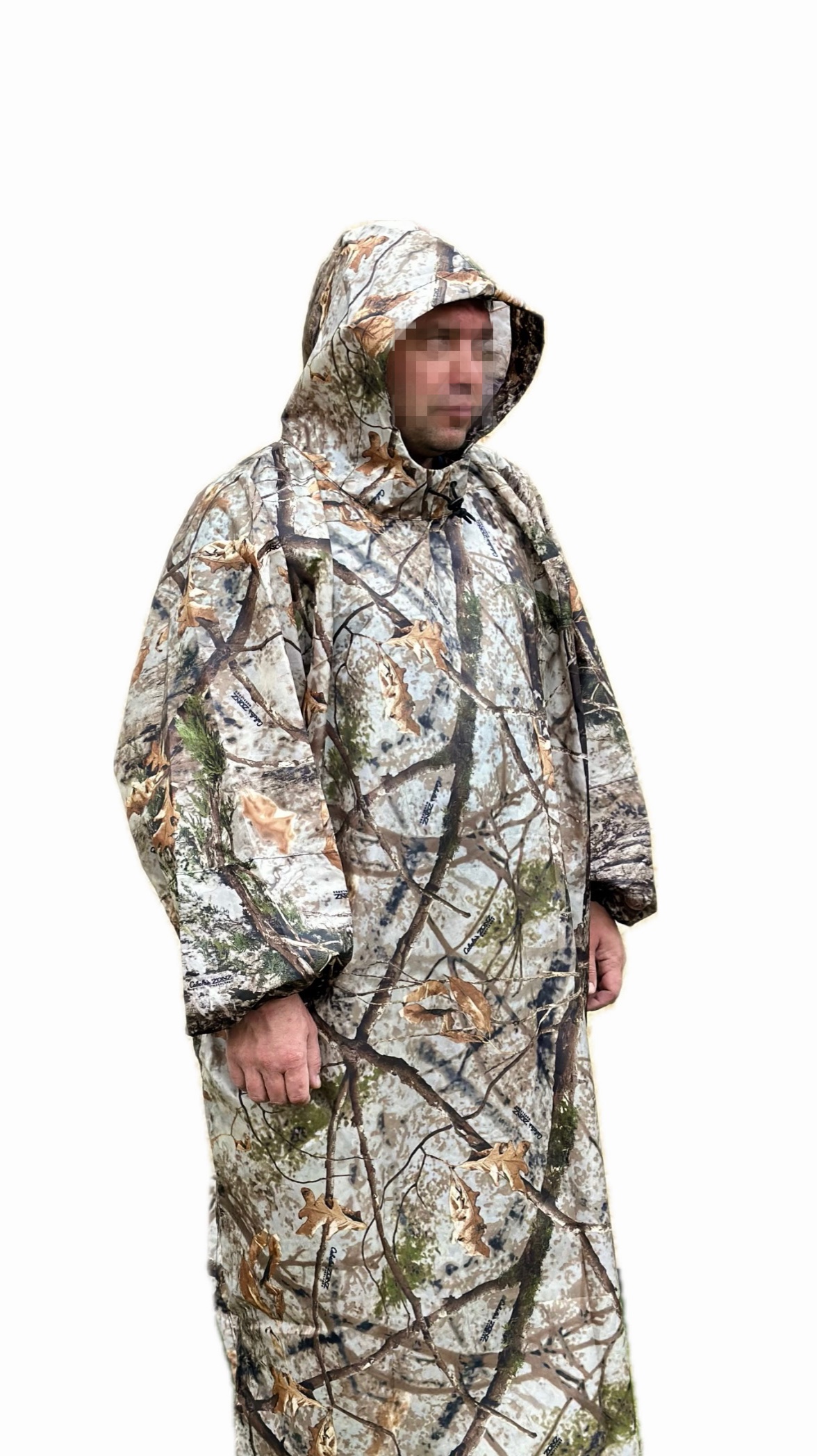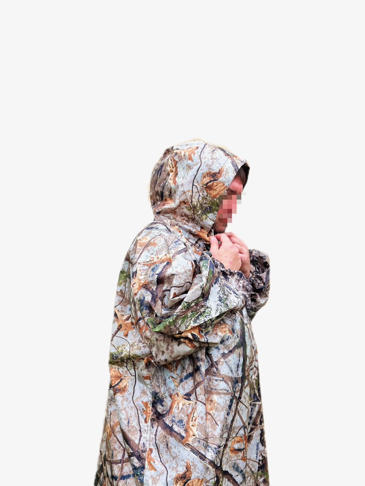 Имеет капюшон со шнурком-регулировкой для удобства и лучшей защиты головы от дождя и ветра. Имеет широкие рукава на резинке. Все швы изделия проклеены.
