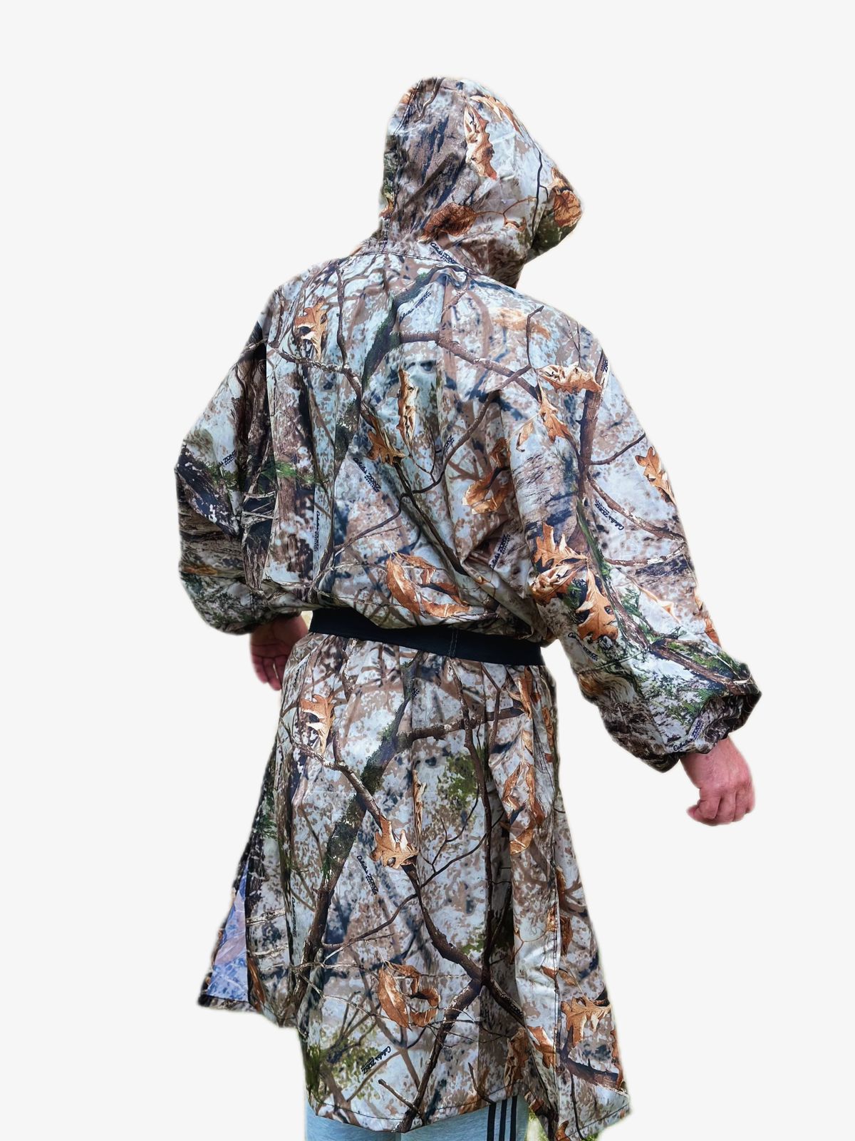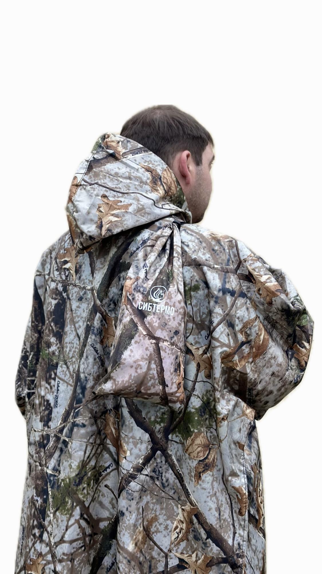 Дождевик свободного кроя (надевается через голову), что позволяет легко надеть его поверх одежды.
